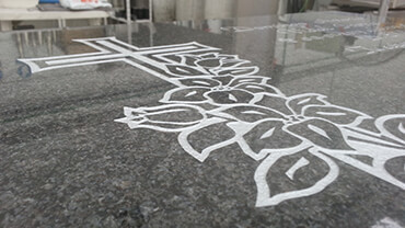 Son grabados lineales y arenados sobre la base del granito, estos luego son pintados de diferente color, dependiendo del color del granito, para así obtener un contraste que resulté atractivo visualmente.